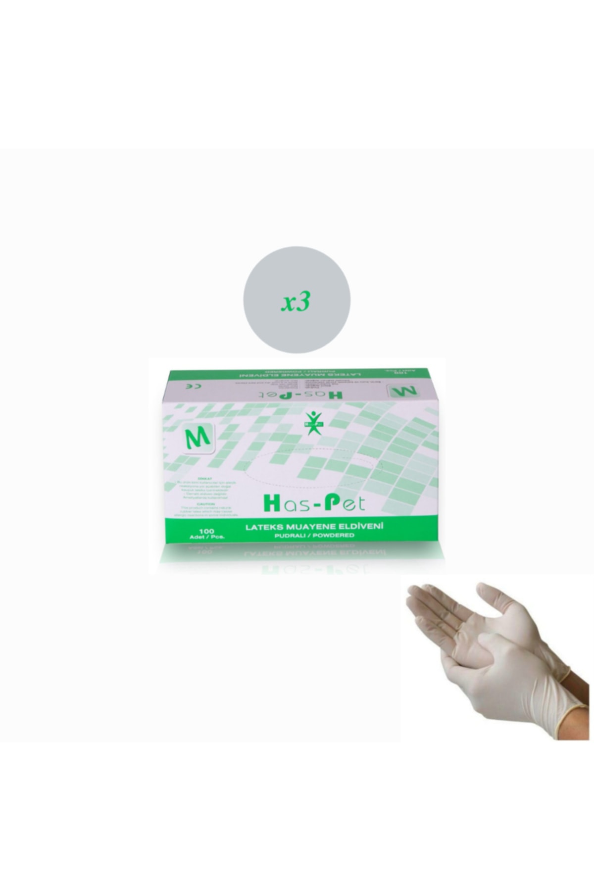 Has-Pet Beyaz Lateks Pudralı Muayene Eldiveni Medium – 3 X 100’Lü