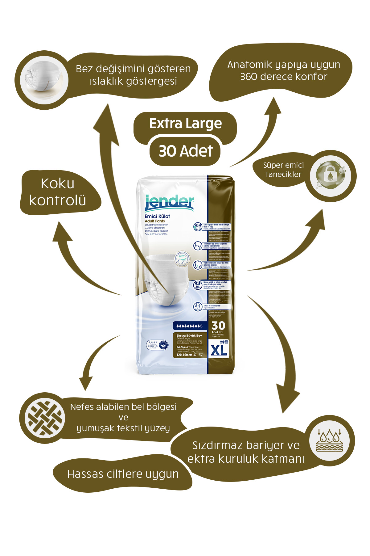 Jender Emici Külot Yetişkin Hasta Bezi Xlarge 30’Lu 120 Adet