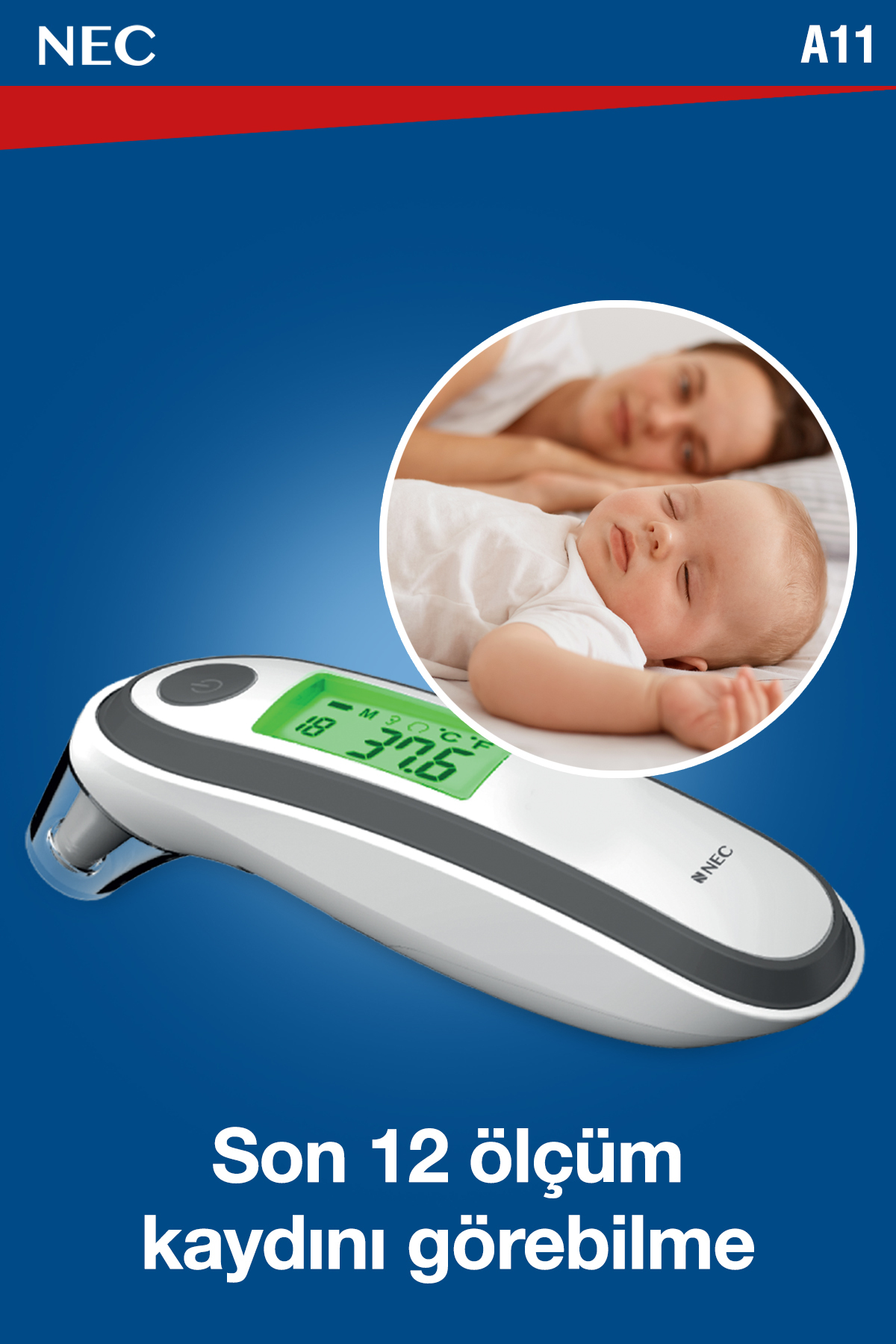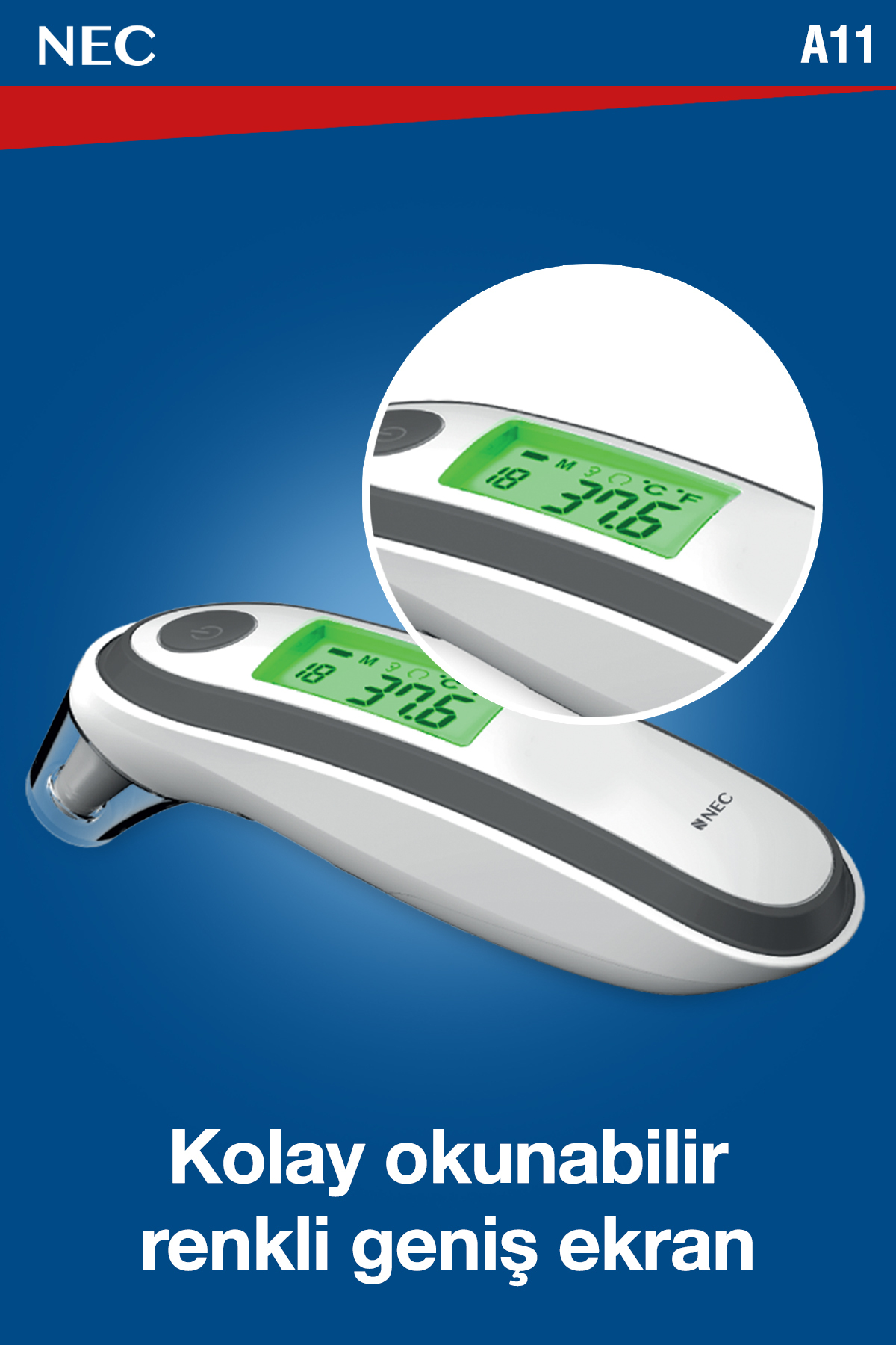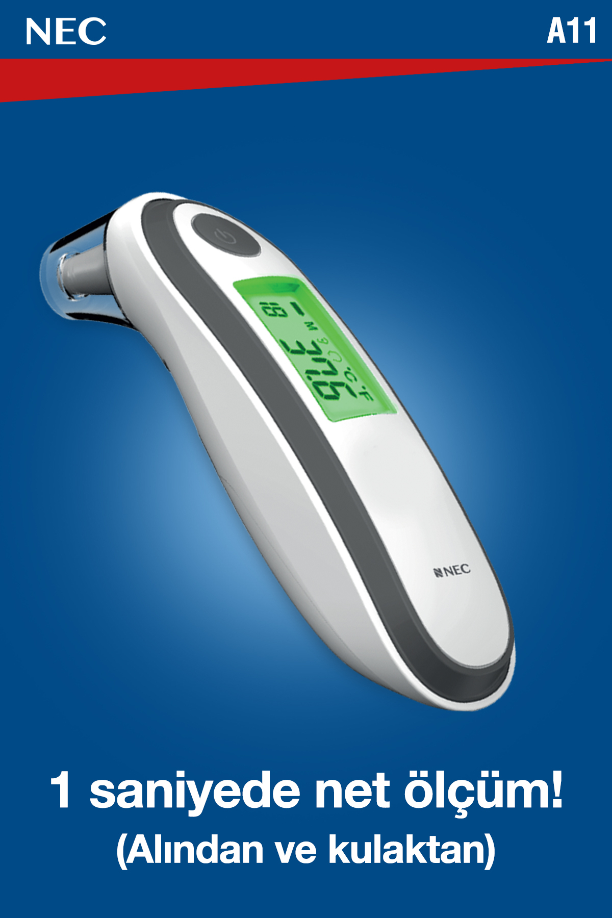 Nec A11 Geniş Ekranlı Kulaktan Ve Alından Dijital Temassız Ateş Ölçer