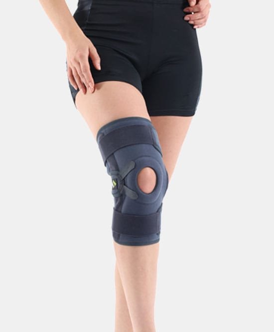 Neopren malzemeden üretilmiş olup, patella çevresi açıktır ve silikon pedle desteklenmiştir. Her iki yanda çelik eklemler mevcut olup maksimum destek sağlayarak dizin kontrollü hareketine izin verir. Dizin hiperekstansiyonunu engeller. Üst ve alt baldırda stabilizasyonu arttıran velkro bantları mevcuttur.