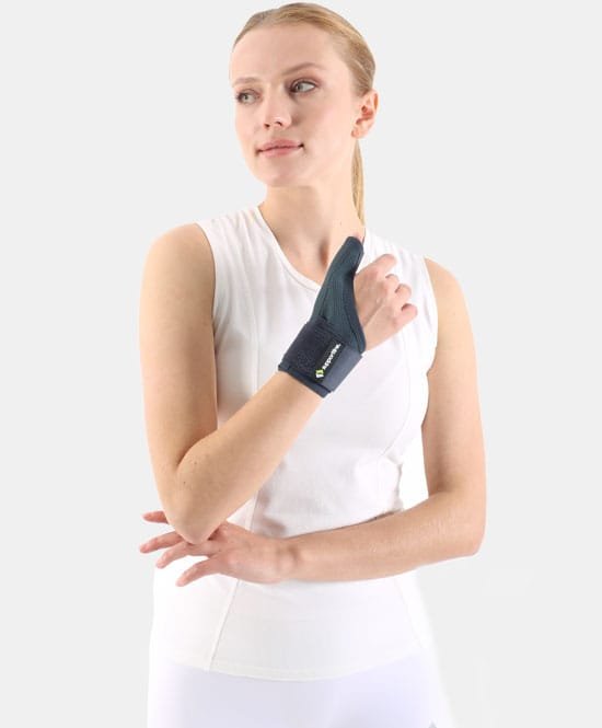 Hava alabilen antialerjik kumaştan üretilmiştir. El bilek ve baş parmak anatomisine uygun olarak tasarlanmıştır. Elastik yapısı ile dokulara kompresyon yaparak kasları güçlendirir şişliği engeller. Alüminyum atel yardımı ile baş parmağı sabitler ve hareketini kısıtlar.