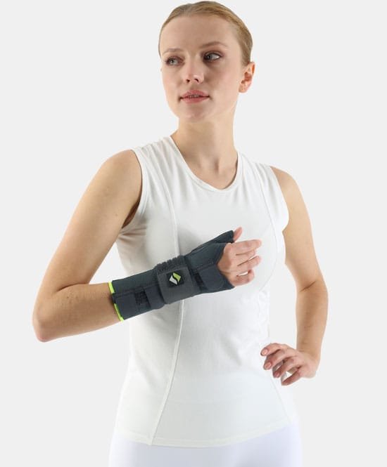 Hava alabilen antialerjik kumaştan üretilmiştir. El bileği ve baş parmak anatomisine uygun olarak tasarlanmıştır. Elastik yapısı ile dokulara kompresyon yaparak kasları güçlendirir şişliği engeller. Alüminyum atel yardımı ile el bileğinin ve başparmağın hareketini tamamenkısıtlar ve istirahate alır. Bilek çevresinde stabilizasyonu arttıran bandajı mevcuttur.